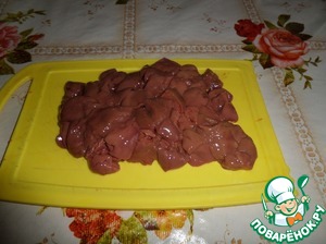Нарезаем куриную печень.