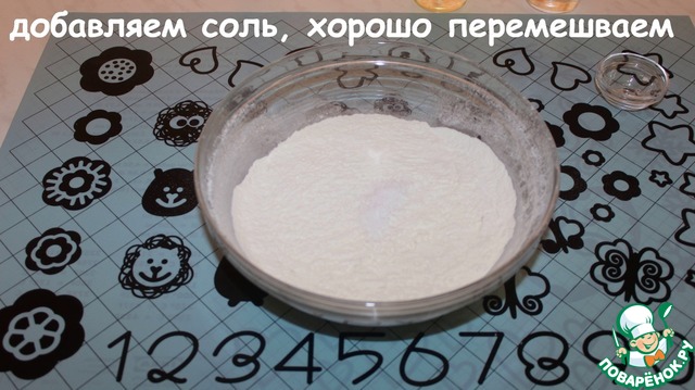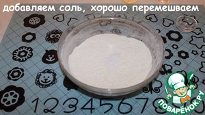 В просеянную муку добавляем соль и хорошо перемешиваем.
