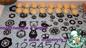 Делим тесто на 16 равных частей. Подкатываем каждый кусочек в шарик. Даем отдохнуть 15 минут.