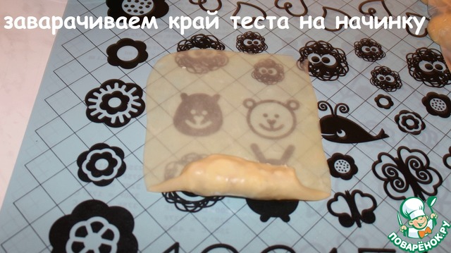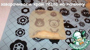 Выкладываем начинку, отступая от края. Заварачиваем край теста на начинку.