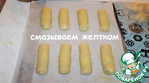 Выкладываем на противень, застеленный пергаментом. Смазываем жестком.