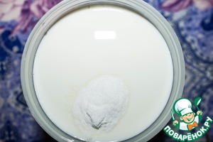 В стерилизованную ёмкость для сквашивания наливаем молоко, всыпаем пакетик закваски и, закрыв крышку, тщательно взбалтываем минуты 2-3. В йогуртницу-термос наливаем кипяток до отметки, ставим ёмкость с молоком, закрываем и убираем в тепло на 6-10 часов. -