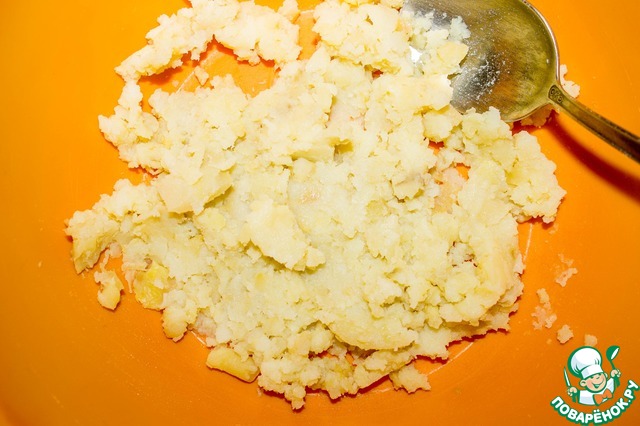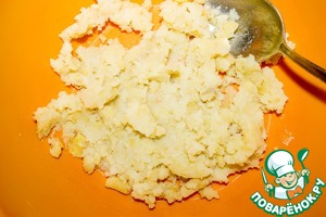 Вареный картофель размять в пюре.