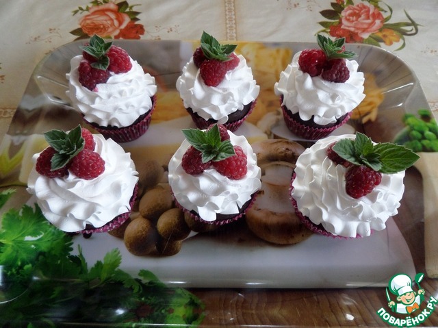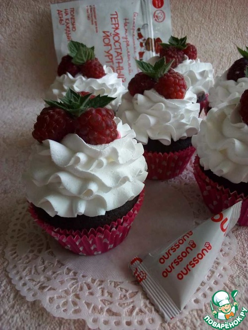 Рецепт «Шоколадно-йогуртовые кексы с малиной»:
