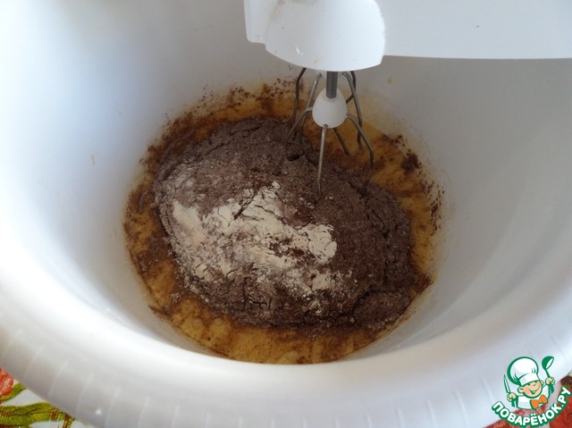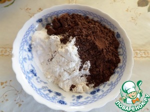 В чашке смешиваем муку, какао-порошок и разрыхлитель теста.