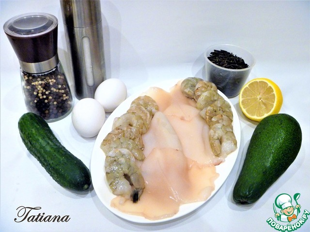 Ингредиенты для «Салат из морепродуктов с диким рисом»: