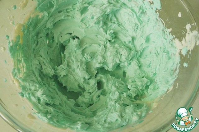 К маслу добавить мягкий творожный сыр и взбить в течение 2-3 минут. По желанию окрасить крем.