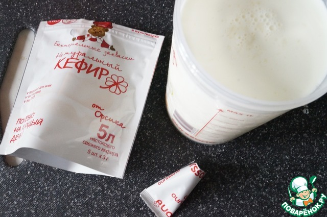 Для кефира: в специальную емкость налить молоко комнатной температуры и добавить закваску. Накрыть крышкой и тщательно встряхнуть, чтобы вся закваска растворилась.