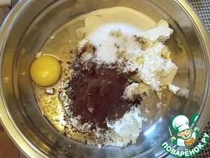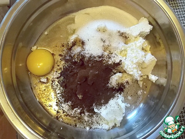 Сложите в чашу творог, сахар, манку, яйцо и черемуховую муку.