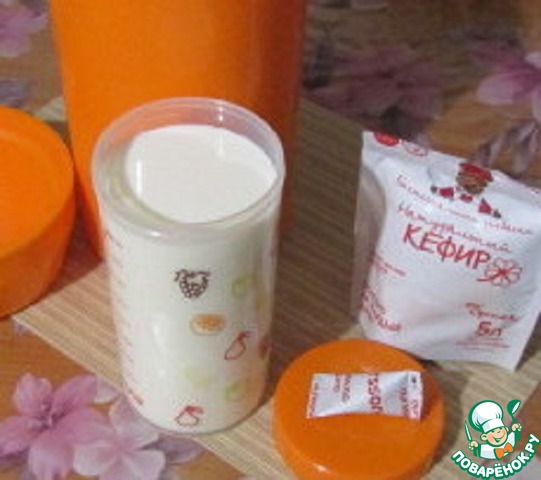 В термос-йогуртницу наливаем кипящей воды до отметки и ставим туда стакан с молоком, закрываем крышкой. Оставляем в теплом месте на 6-10 часов. -