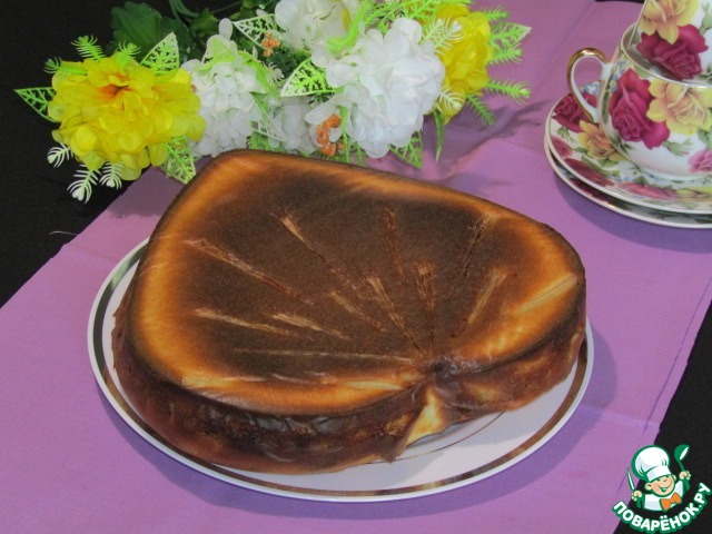 Потом я достала, остудила и перевернула на тарелочку, чтоб виден был узор. Посыпаем сахарной пудрой и приглашаем родных к чаепитию.