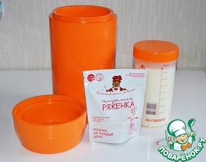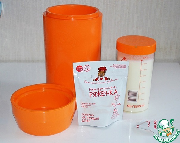 Ряженку необходимо приготовить заранее. Для этого в стерилизованную емкость термоса нальем 1 л пастеризованного топленого молока комнатной температуры и тщательно смешаем его с закваской. Нальем в термос кипяток и оставим на ночь. Утром емкость с ряженкой поставим в холодильник на пару часов. Все очень просто, а результат потрясающий! Вкуснейшая и свежайшая ряженка готова.