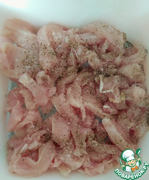 • Нарезать полосками, посолить, добавить специи.