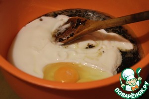 Смесь из варенья смешать с йогуртом, сахаром и яйцом.