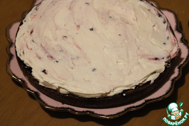 Один из коржей поместить на блюдо, смазать его черничным вареньем.