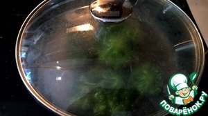 Накрываем крышкой и греем минут 5 на очень маленьком огне, периодически помешивая. Важно не подрумянить соцветья - они очень нежные. От нагрева соцветья начнут приобретать более темный, сочный зеленый цвет. Когда они все станут такого цвета - они готовы.