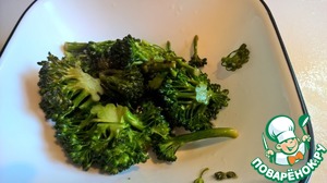 Как только брокколини готовы - выкладываем их на вспомогательную тарелку - чтобы прекратить процесс готовки.