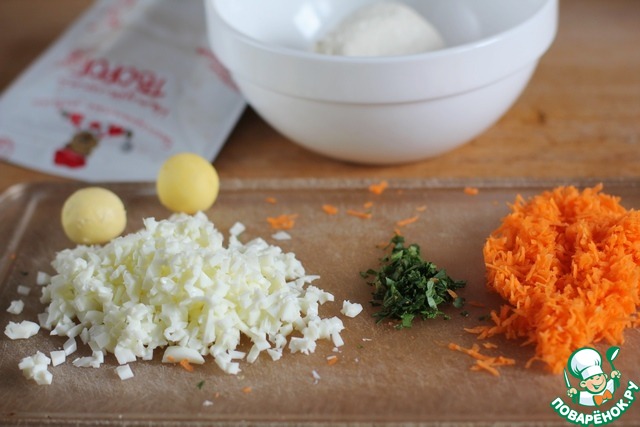 • Приготовим ингредиенты. Яйцо отварить, морковь почистить