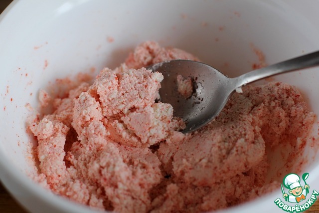 • Творог перемешать с солью и паприкой. Для остроты можно добавить перец, горчицу или чеснок.