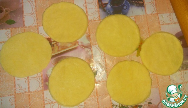 Тесто раскатать в пласт толщиной 2 мм. Вырезать круги по размеру больше чем размер формочек, в которых будут выпекаться тарталетки.