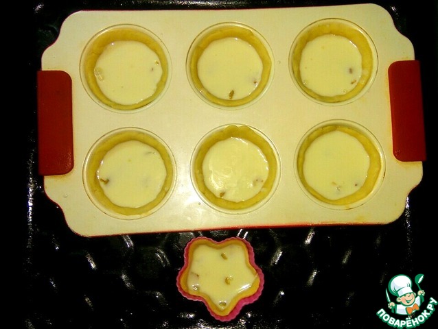 Смазать формочки для тарталеток или маффинов сливочным маслом. Разогреть духовку до 180 градусов.