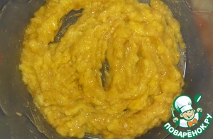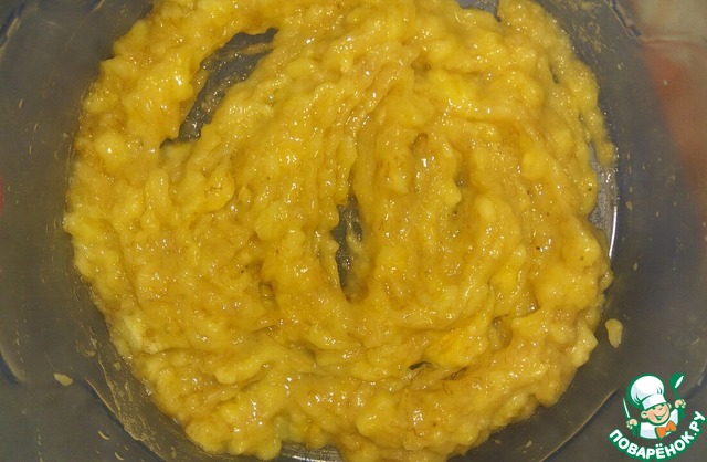 Размять бананы вилкой. Бананы обязательно должны быть переспелые и мягкие, можно даже подпорченые.