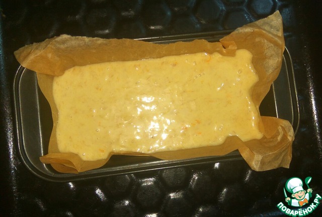 Форму для выпечки застелить пергаментом. Выложить тесто в форму. Выпекать в разогретой до 180 градусов духовке 40 минут, до готовности кекса.
