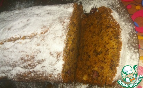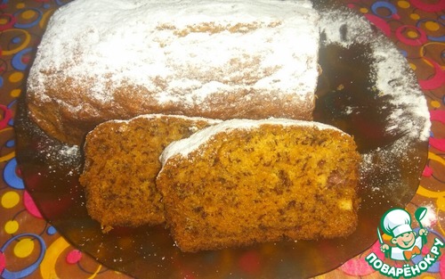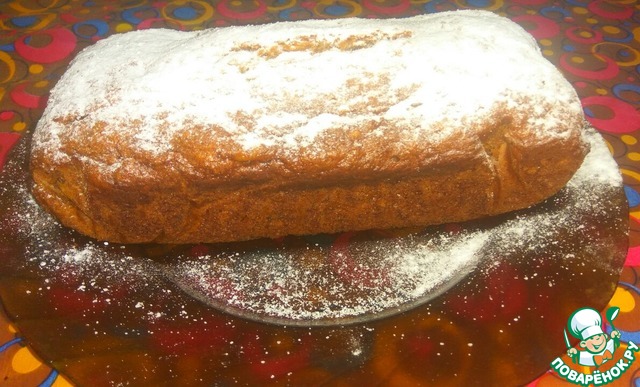 Готовый кекс посыпать сахарной пудрой или полить глазурью/шоколадом.