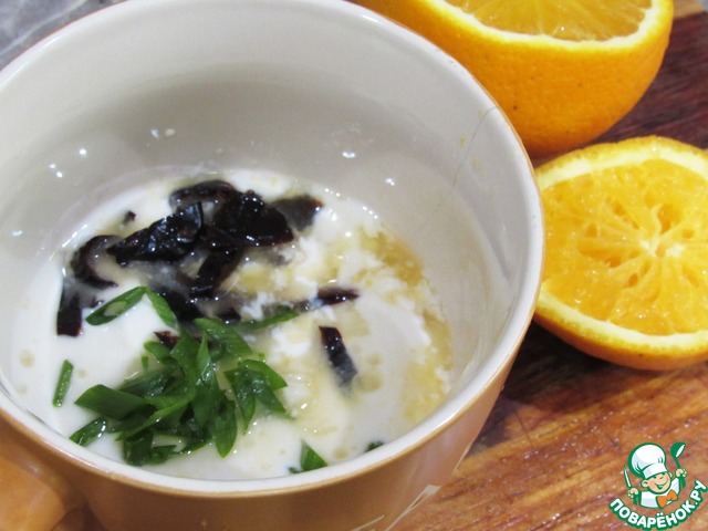 Мелко режем курагу и зеленый лук. Добавляем в соус.