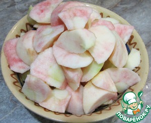 Очищаем яблоки от кожуры и семечек. Нарезаем на дольки.