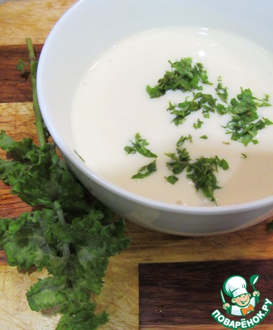 Добавить ряженку и мелко порубленные листья мяты. Дать настояться 30-40 минут.
