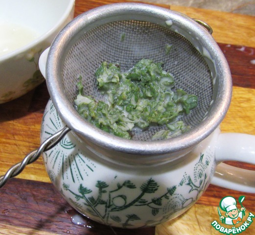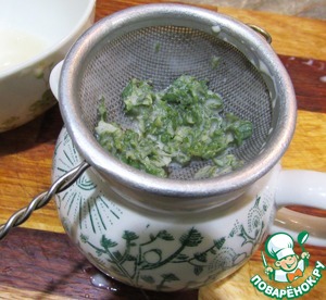Я вот не очень люблю в соусах всякие включения, поэтому процеживаю, тщательно отжимая листочки...