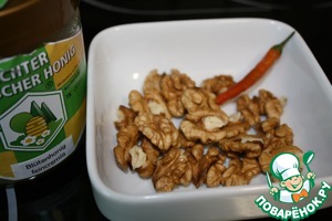 Побалуйте себя изысканной закуской. С чашечкой кофе или вина она просто бесподобна. Пикантность сыра, сладость и острота орешков создают гармонию вкуса.