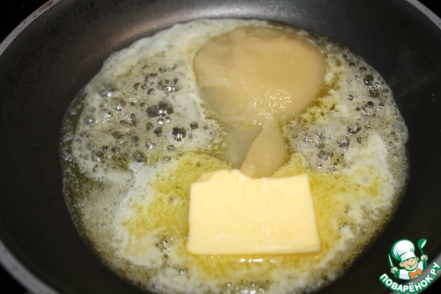 Растапливаем масло и мед.