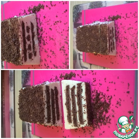 Сверху десерт посыпьте кондитерскими посыпками (шоколадной стружкой, измельченным печеньем, и др...)Форму с десертом уберите в холодильник до полного застывания (сутки).