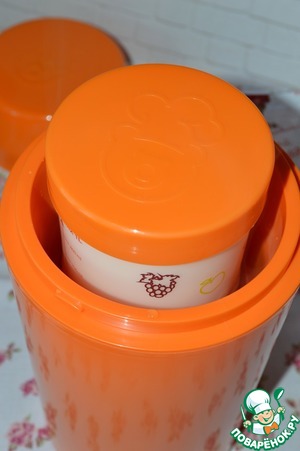 - в термос-йогуртницу налить кипятка до специальной отметки и поместить в него контейнер с молочной смесью