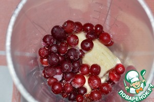 - в блендер сложить банан и клюкву, взбить в пюре.