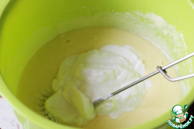 Добавить йогурт и еще раз взбить.