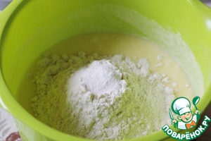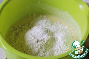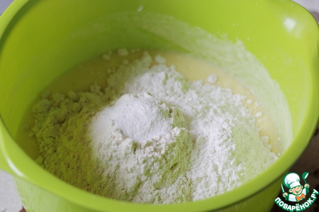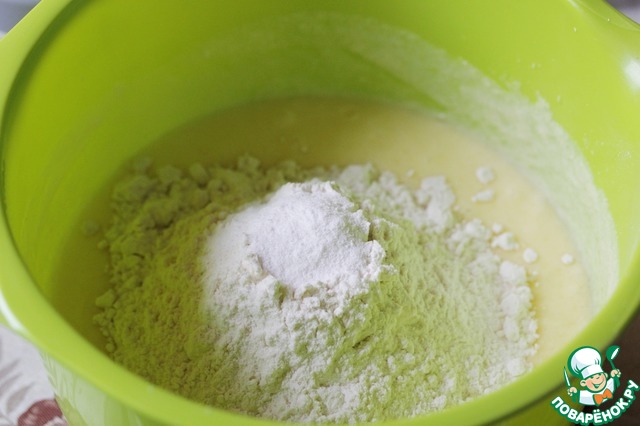 Всыпать муку, смешанную с разрыхлителем.