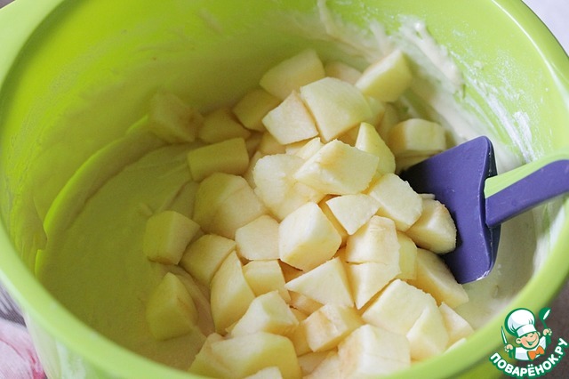 Яблоки очистить и нарезать кубиками со стороной 1-1,5 см.
