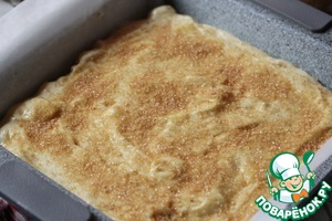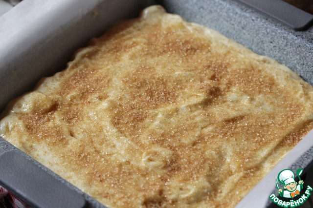 Разровнять и присыпать сверху коричневым сахаром.