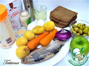 Ингредиенты для «Салат с сельдью в кефирном желе»: