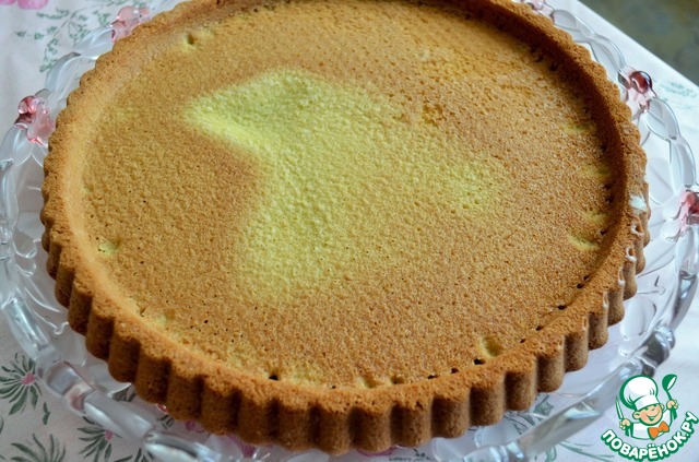 Форму лучше взять большого диаметра, чтобы бисквит вышел не высоким. Я использую специальную форму для выпечки открытых пирогов (кростат) со слегка выдающимся центром.
