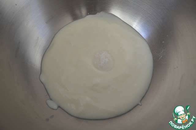 Слегка взбить на средних оборотах миксера или венчиком.