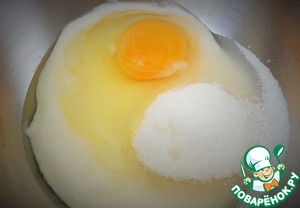 • Добавить сахар, яйцо - одно целое и белок.