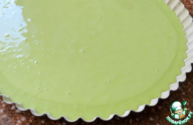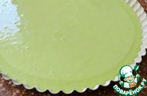 Вылить тесто, пару раз аккуратно постучать формой по столу.