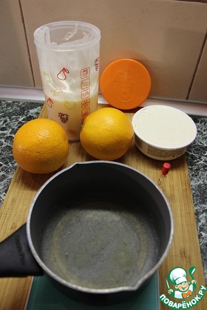 2. С апельсинов снять цедру. Выжать сок с помощью соковыжималки для цитрусовых. Должно получиться 300 мл. Если апельсины попались сухие, можно добавить апельсинового сока до нужного объема. -