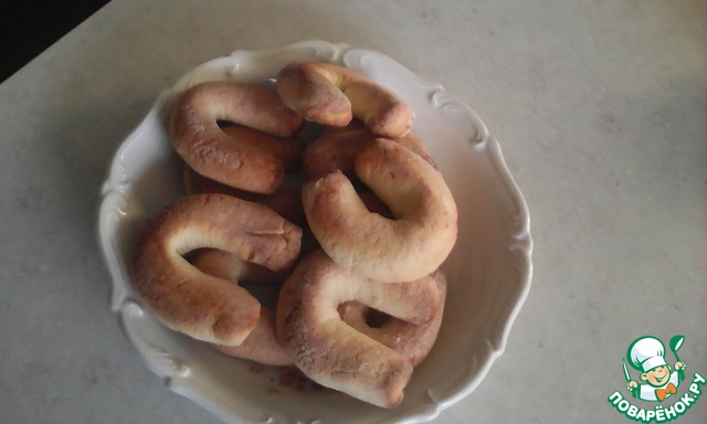 Получившиеся колбаски выкладывают на сухой противень таким образом, чтобы расстояние между ними было около 5 см, изогнуть каждую в форме полумесяца.