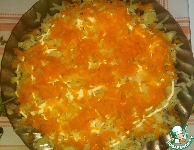 3 слой: натереть половину моркови,