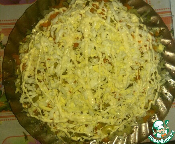 5 слой: натереть половину яиц,